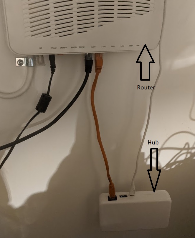 - Unplug power from the Hub, but keep the wire connected to the router